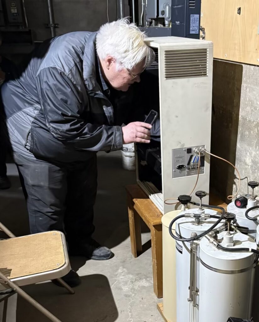 The old repeater on the Mayville elevator was becoming unreliable. It had been in operation since the late 1970’s. A new repeater was set up on the elevator no longer in used in Portland. This provided a higher elevation for the antenna and in a location were the club had good access. While club members accomplished the work, the master KC0SD had to finalize the setup.